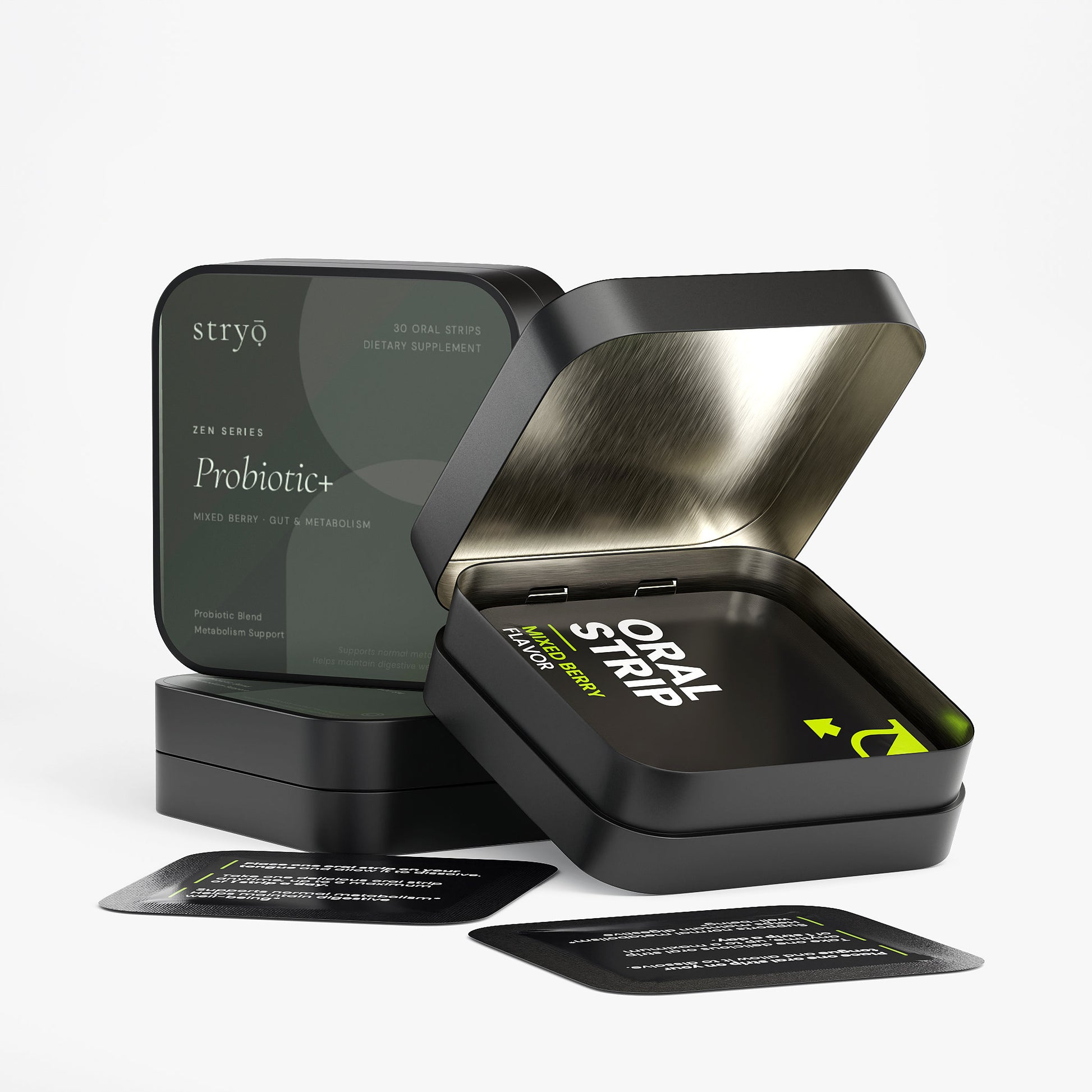 Full ingredient list: Probiotic Blend (Lactobacillus Acidophilus, Bifidobacterium Lactis), Prebiotic Fiber (Inulin), Pullulan, Cellulose, Lecithin, Mixed Berry Flavor, Malic Acid, Pectin, Monk Fruit Extract, Steviol Glycosides